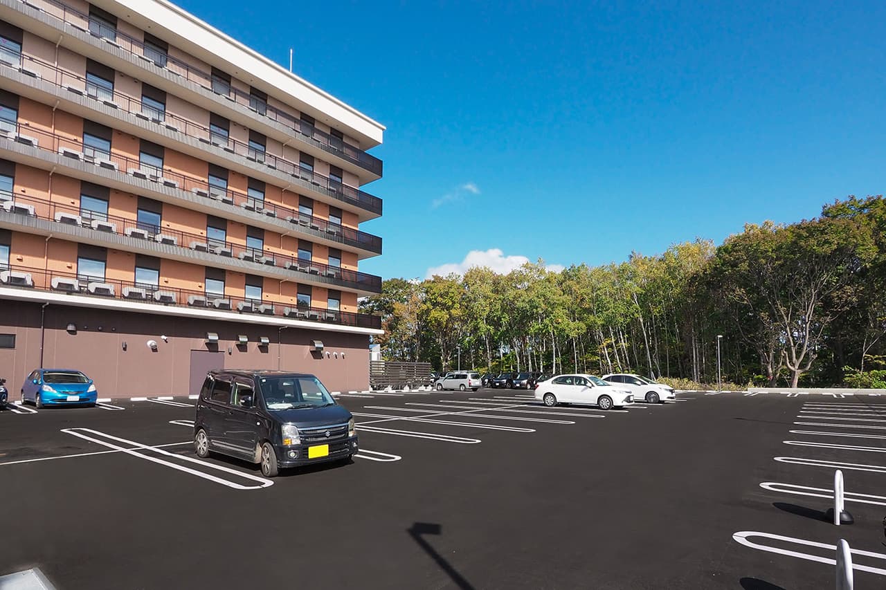 広々とした駐車場で、快適なアクセスをサポート。お車でも安心してお越しいただけます。